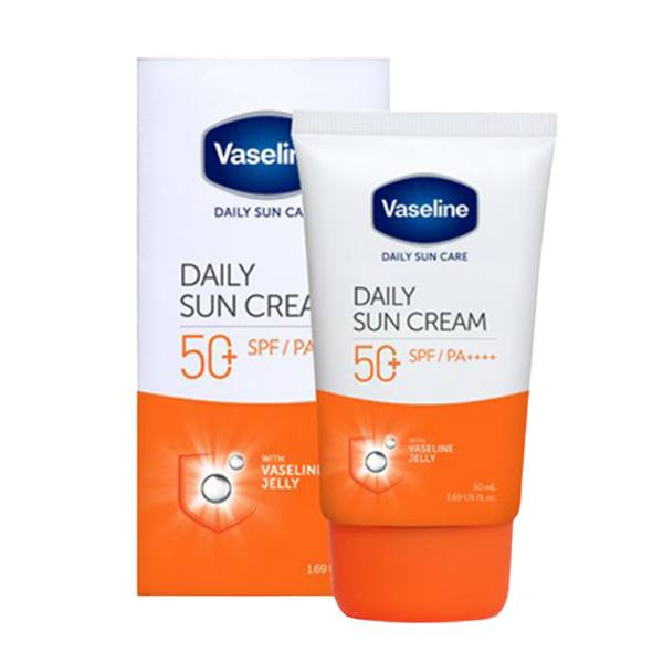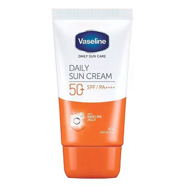 کرم ضد آفتاب بی رنگ وازلین حاویSPF 50 دارای بافت کرمی و سبک دارای ژل وازلین برای رطوبت رسانی پوست