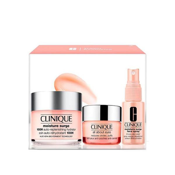 پک مسافرتی آبرسان 100 ساعته کلینیک | Clinique travel exclusive 100H moisture آبرسانی 100 ساعته پوست دارای اسپری آبرسان صورت، آبرسان دور چشم و آبرسان صورت